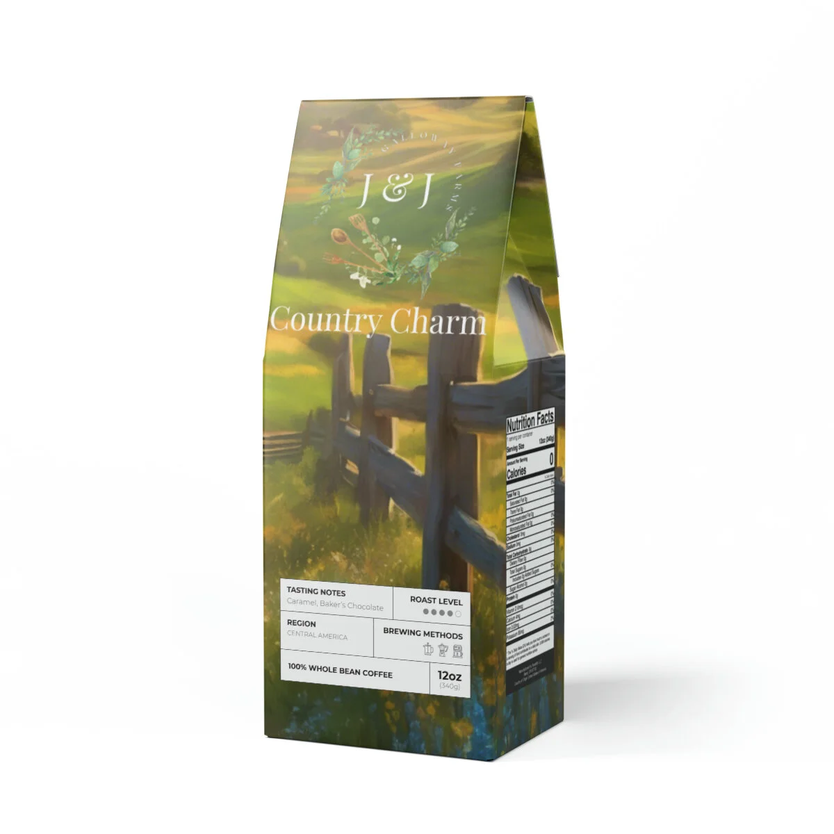 Meet the Country Charm, a bold and rich brew to kickstart your day! This 12oz pack features a medium-dark roast, delivering a deep body with notes of baker's chocolate and caramelized sugar. Meanwhile, the body tastes rich with warm spice, caramel, and dark chocolate-tasting notes that'll leave you craving more. Sourced from Central America, it's perfect for brewing in your drip coffee maker, French press, Moka Pot, or percolator, or enjoying as a refreshing cold brew. Whether you prefer whole bean or ground, we've got you covered. Roasted with care right here in the USA.